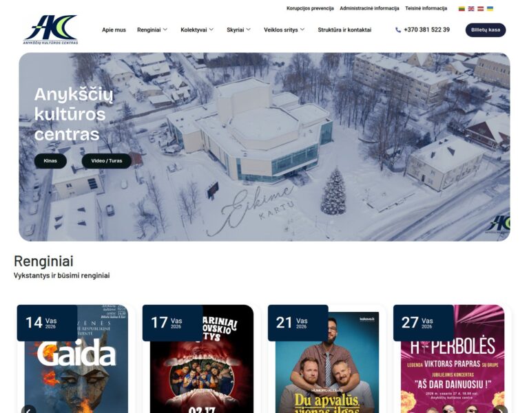 Anykščių kultūros centras - vieta, kur kultūra atgyja ir suartina bendruomenę. Sužinokite apie renginius ir veiklą.