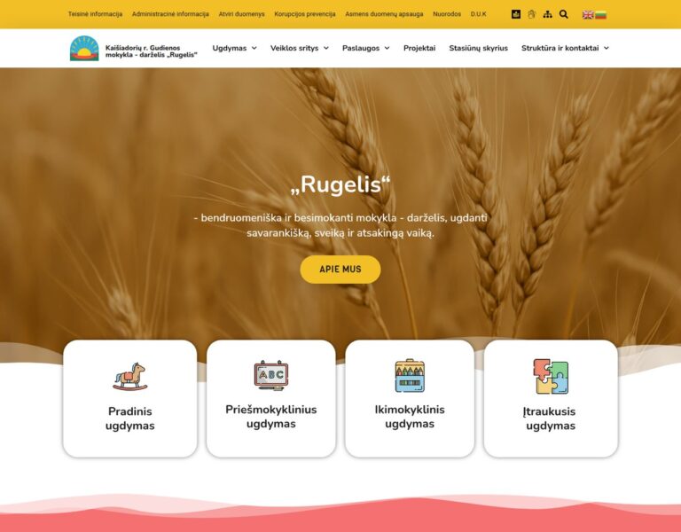 Sukūrėme modernią interneto svetainę su patogia navigacija ir interaktyviomis funkcijomis, kuri leidžia mokyklai-darželiui „Rugelis“ efektyviai komunikuoti su tėvais ir bendruomene.